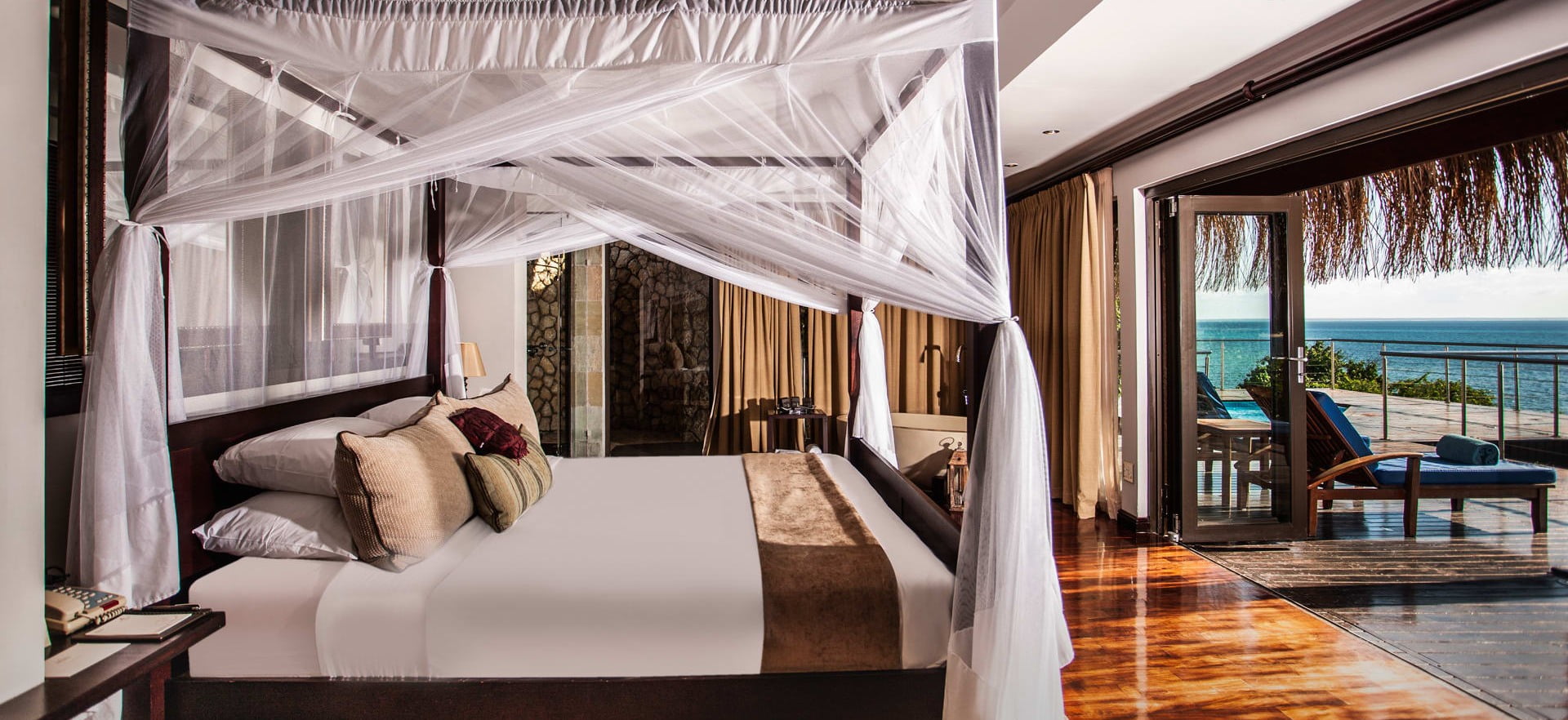 With a vision of blending into the natural landscapes, the resort is beautifully designed to harmonise indoor-outdoor living, incorporating natural and organic materials with effortlessly cool bohemian-style interiors. There are 8 generous residences dotted along the cove, with between one and three-bedroom options to choose from. Each has its own stretch of private beach, an infinity pool and deck, dedicated team and electric Mini-Mokes.